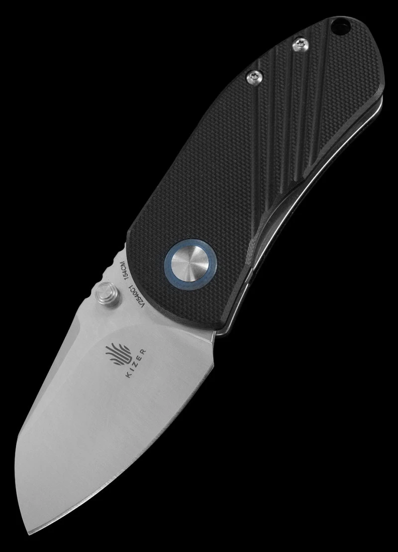 Description: Kizer Cutlery Contrail Black lame Sheepsfoot en acier 154CM 59 61HRC – Mancheen acier & G10 black – Ouverture de la lame d’une main – Sécuritélinerlock – Clip