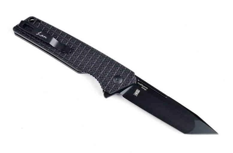 Descriptif : Le couteau Kizer Lan Black est doté d’une lame tanto en acier N690 avec une finition noire. Le manche est en acier & en micarta de couleur Black. L’ouverture d’une main est très fluide grâce au pivot sur roulement à billes. La lame est bloquée par le système de sécurité linerlock. Le clip permet un transport discret dans la poche ou dans le sac.