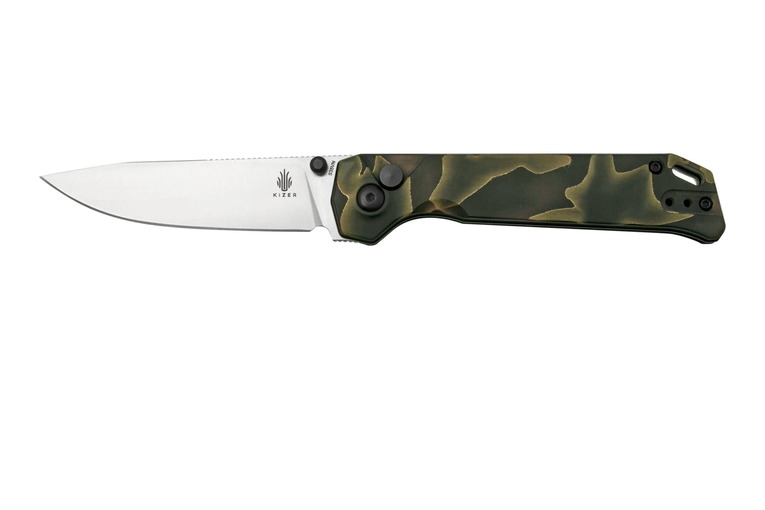 Le Kizer Begleiter 2 est un gros couteau de poche pratique et abordable, pour une utilisation quotidienne. On ouvre le Begleiter avec les repose-pouces. Lâaction est trĂšs souple, jusquâĂ ce que le linerlock ne verrouille la lame en position ouverte. Des liners en acier sous les plaquettes viennent renforcer le cadre. On peut donc utiliser ce couteau que ce soit pour Ă©plucher une pomme ou pour couper un morceau de carton.