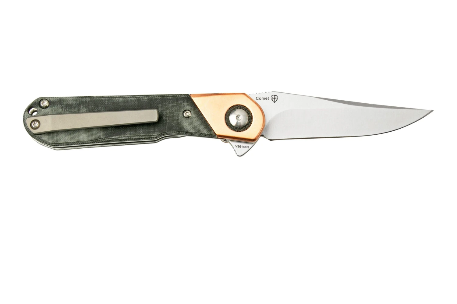 Le Kizer Comet V3614C3 est un modĂšle au design magnifique, signĂ© Paul Munko. La façon dont ce couteau est fabriquĂ© est incomparable. Pour ce couteau, Kizer a optĂ© pour des matĂ©riaux premium, ce qui en fait un vĂ©ritable modĂšle de collection. L’ouverture du Comet est incroyablement souple grĂące aux roullements Ă billes en cĂ©ramique.