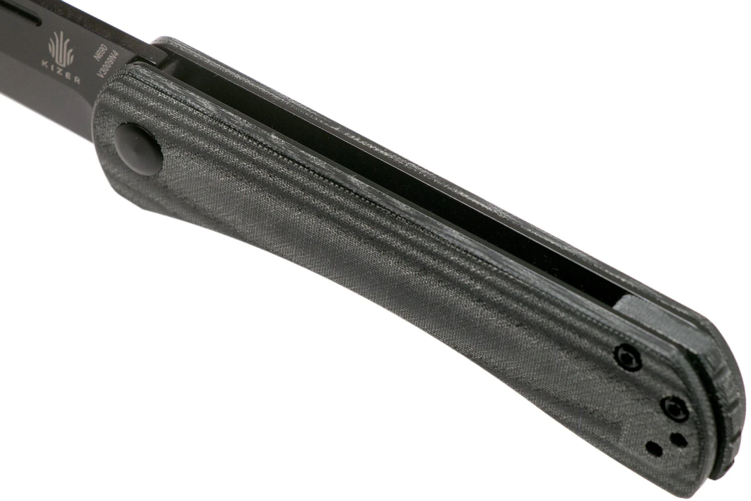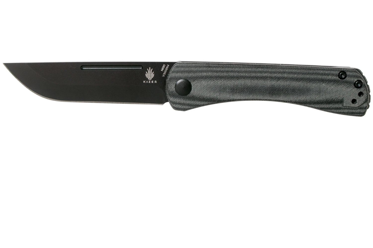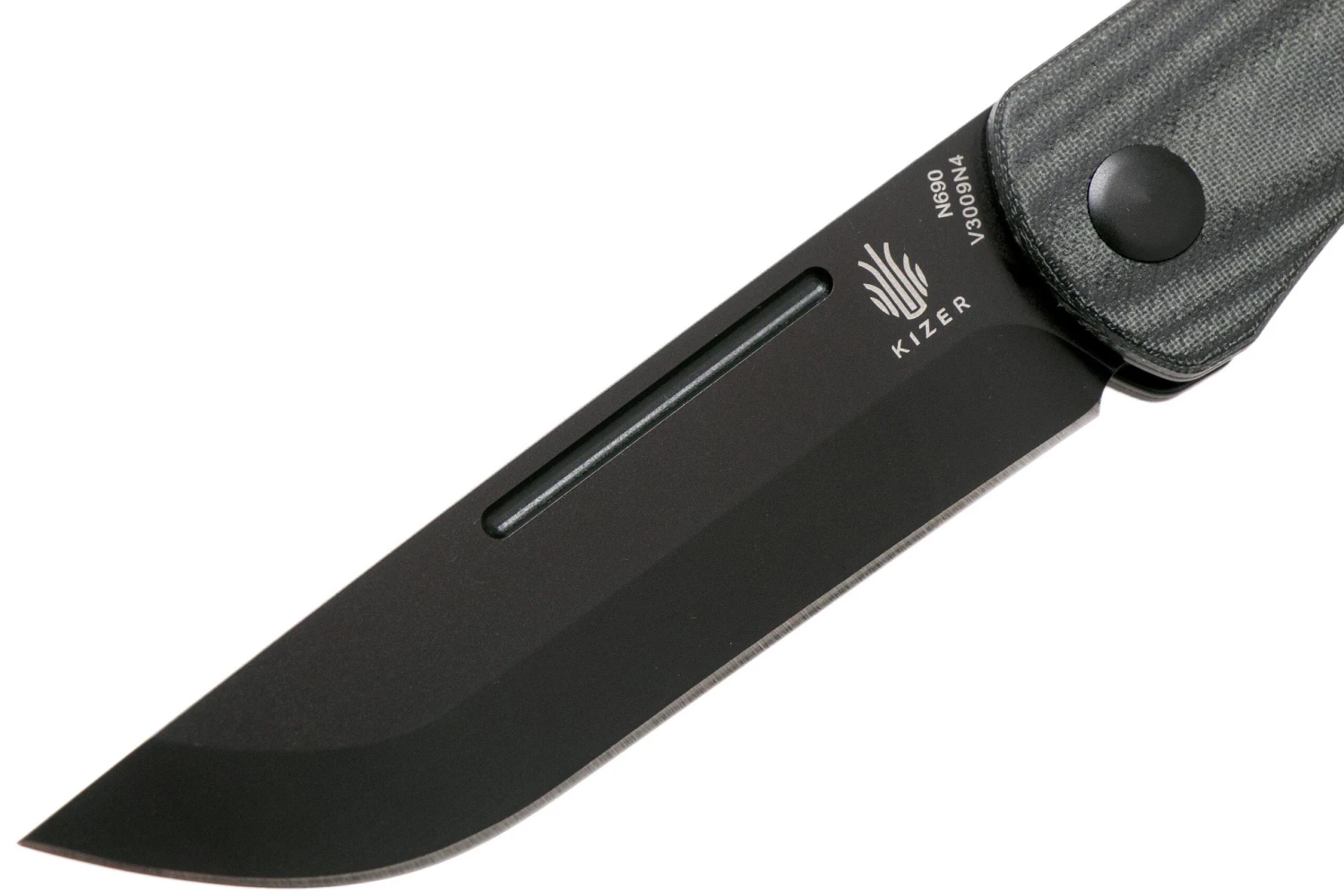 Le Kizer Pinch V3009 est un couteau de poche EDC très pratique conçu par Rob Helbig. Le nom « Pinch » fait référence à deux éléments chez ce couteau de poche : la manière dont s’ouvre la lame avec deux mains. Et parce qu’il faut pincer avec le pouce et l’index pour l’ouvrir. Mais également le verrouillage slipjoint. Au lieu d’un ressort simple, deux petits ressorts avec roulement à billes ont été ajoutés aux liners. Ils « pincent » les deux côtés de la lame pour la garder ouverte.