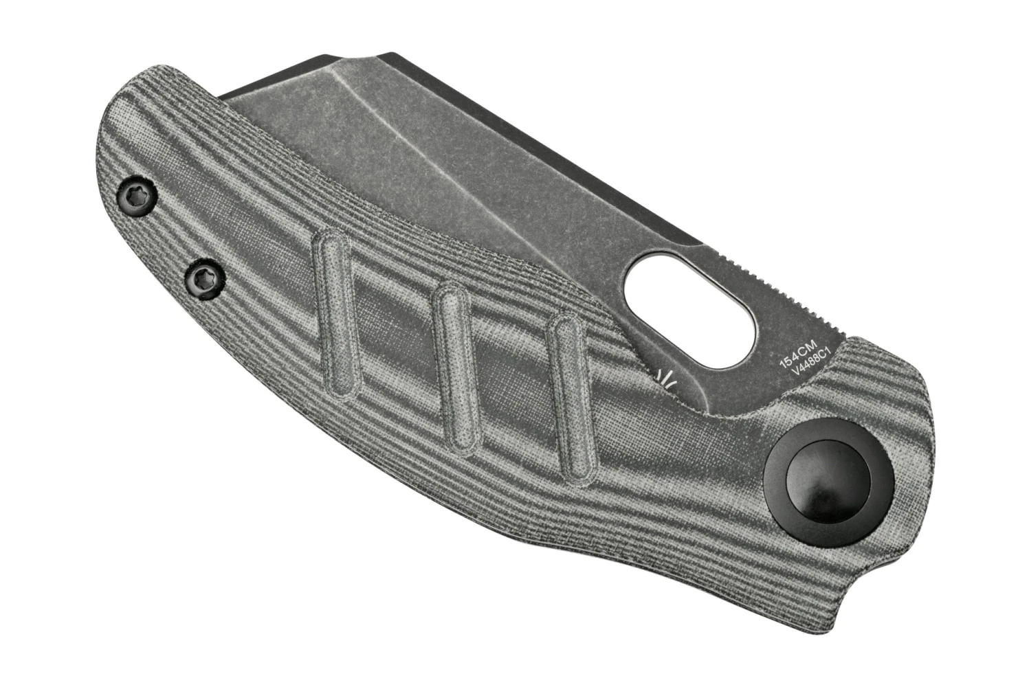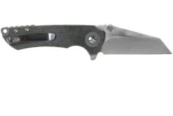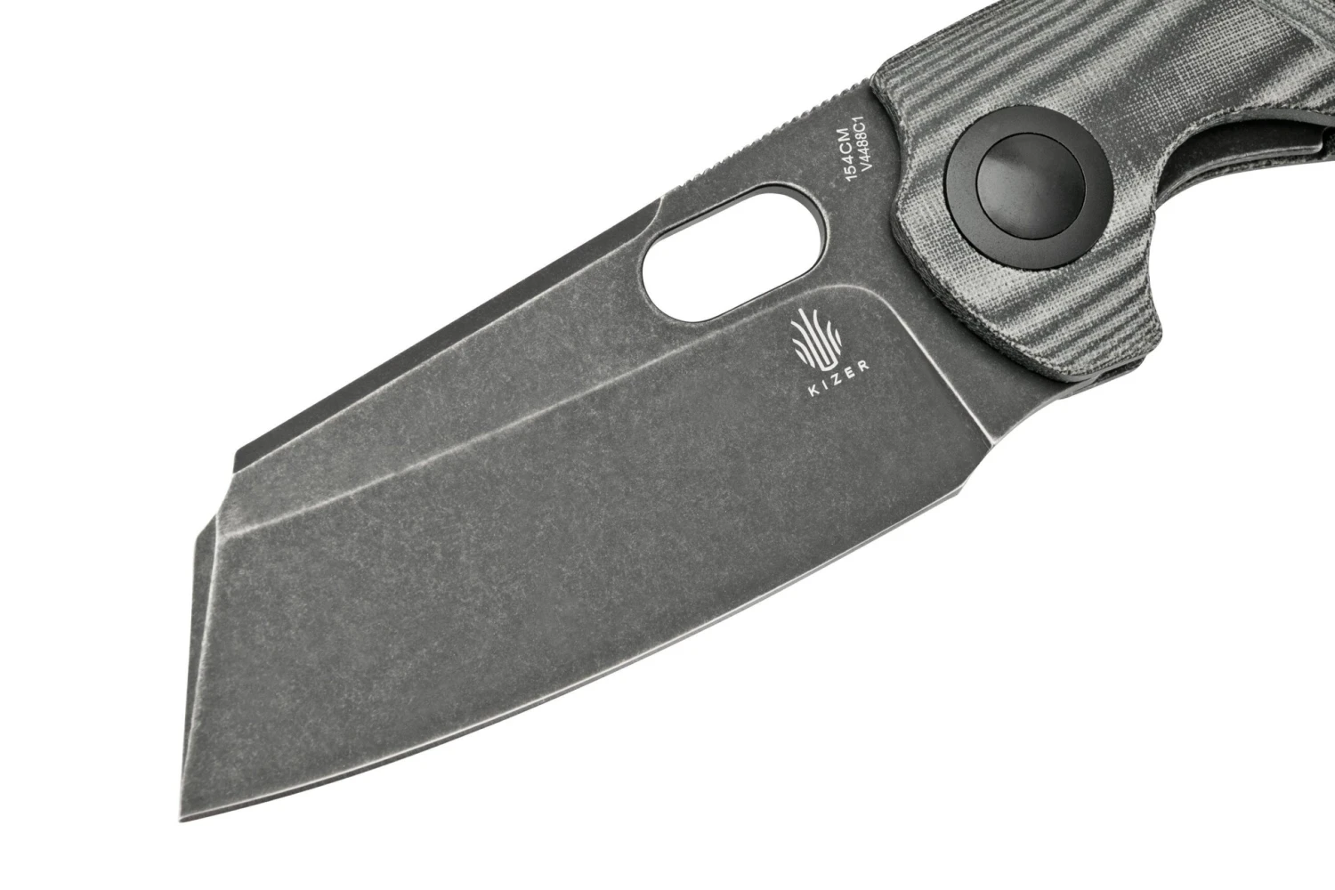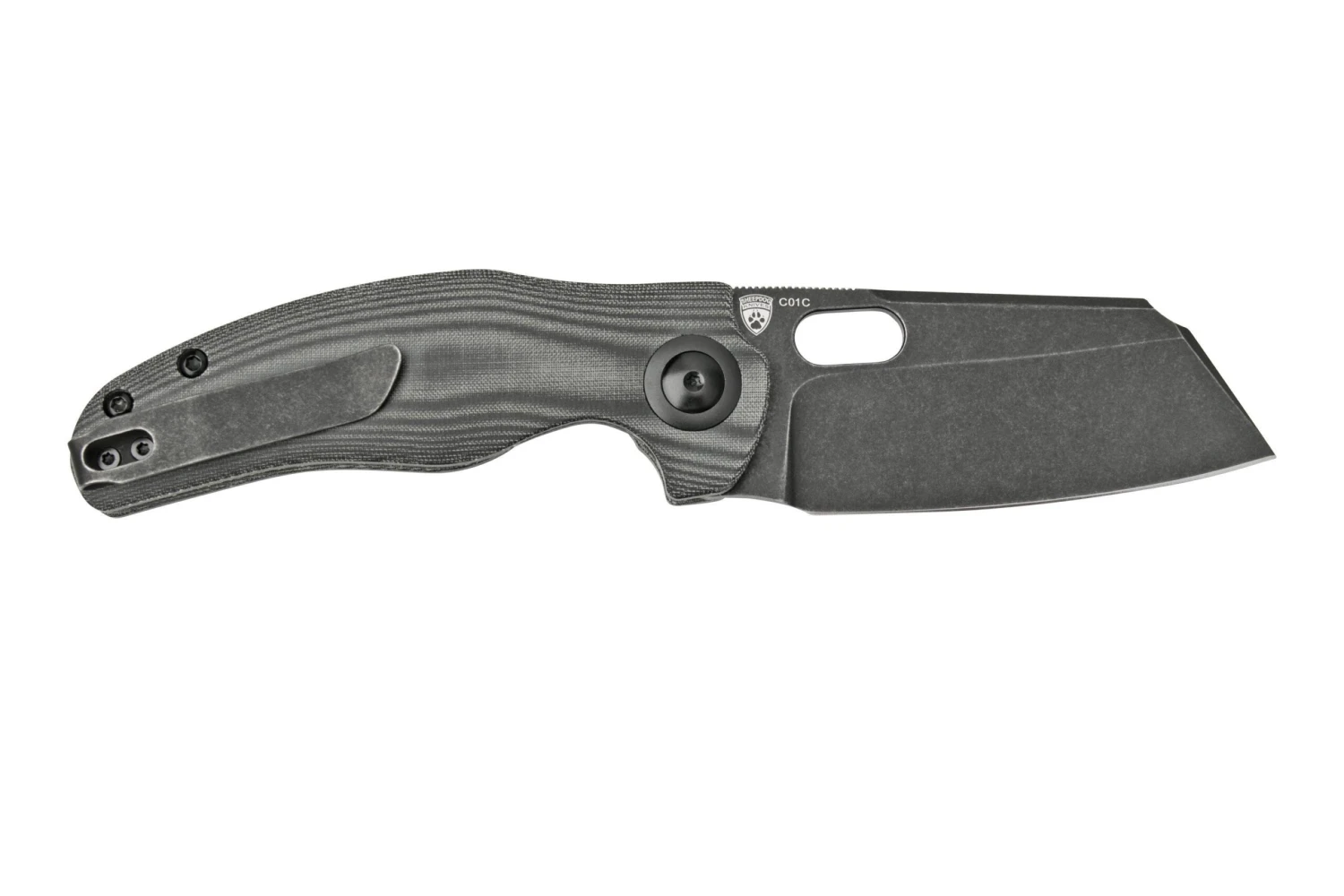 Le Kizer C01C est un couteau de poche robuste conçu par Chris Conaway de Sheepdog Knives. La différence entre la lame et le manche est vraiment frappante. La lame est relativement grosse par rapport au manche ‘’normal’’. Ce couteau a donc quelque chose d’un couperet avec la lame sheepsfoot. Un vrai « pocket cleaver » comme dirait les Anglais. La lame est équipée de roulements à billes. Le C01C s’ouvre donc facilement et tout en douceur.