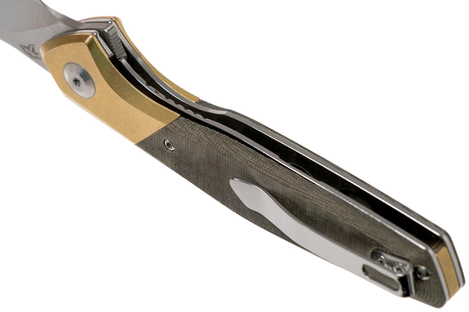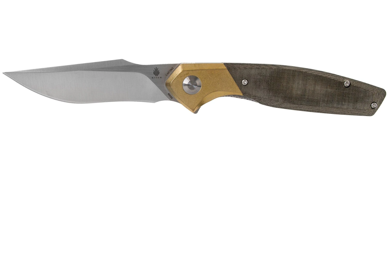 Le Kizer Grazioso V4572N2 est un couteau de poche EDC stylé et solide. Grazioso signifie élégant. Ce couteau le doit à son joli design. Le manche est en micarta vert avec un insert en laiton. Les liners en acier complètent ce look.