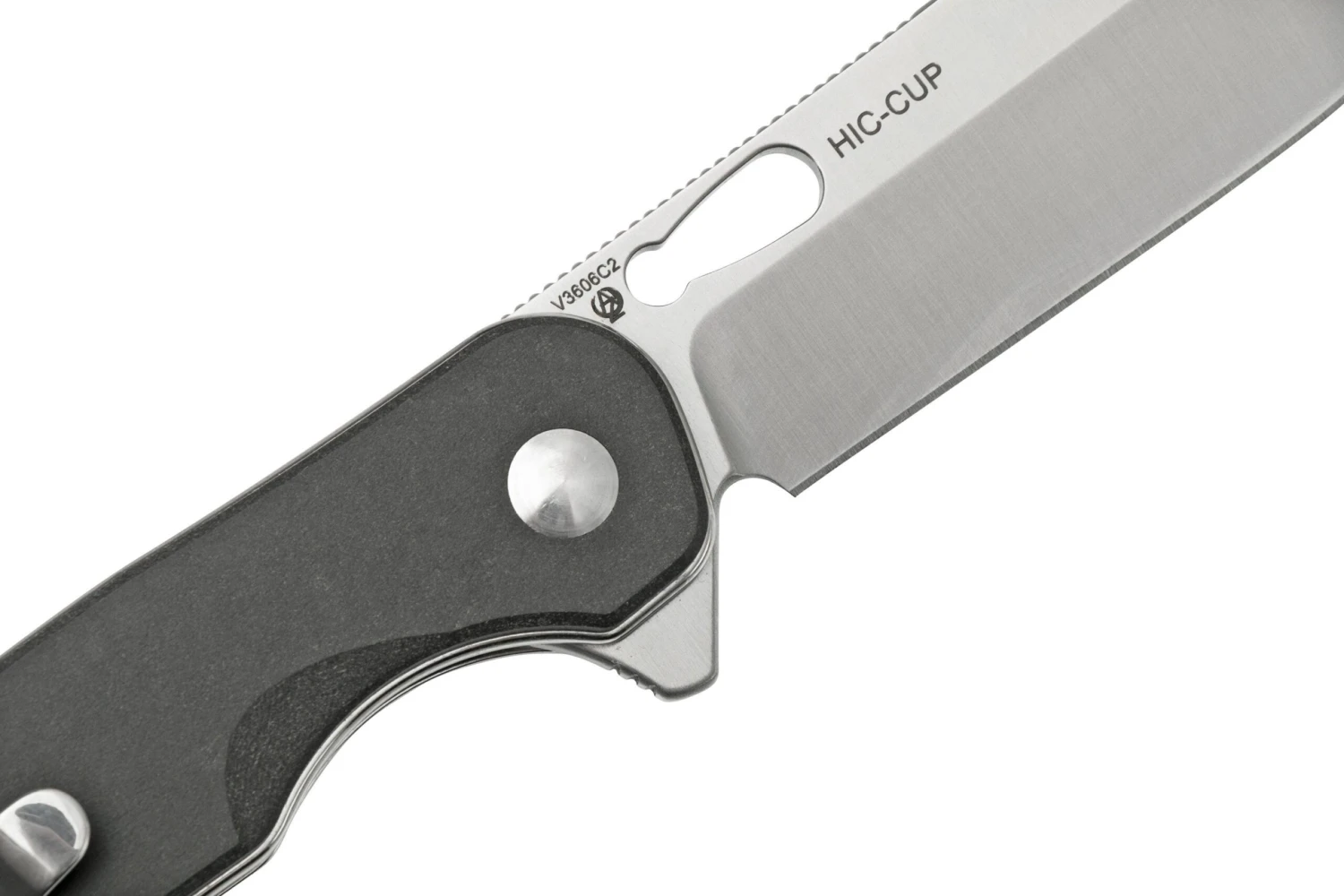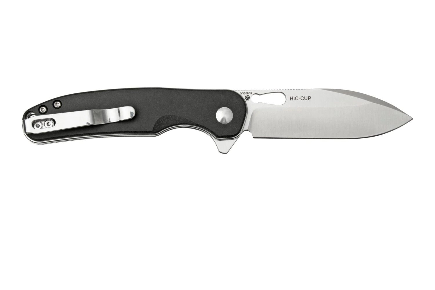 Le Kizer Vanguard HIC-CUP V3606C2 est un couteau de poche EDC solide et pratique. On ouvre la lame avec le trou pour le pouce ou le flipper. Un buttonlock solide maintient la lame en position ouverte. Le clip de poche deep-carry permet de porter le couteau bien au fond de la poche. Il est placé de base à la droite du manche, mais on peut facilement le déplacer de l’autre côté. Vous préférez ouvrir votre couteau avec un repose-pouce ? Pas de soucis ! Le trou pour le pouce dans la lame permet d’y ajouter facilement le repose-pouce inclus.