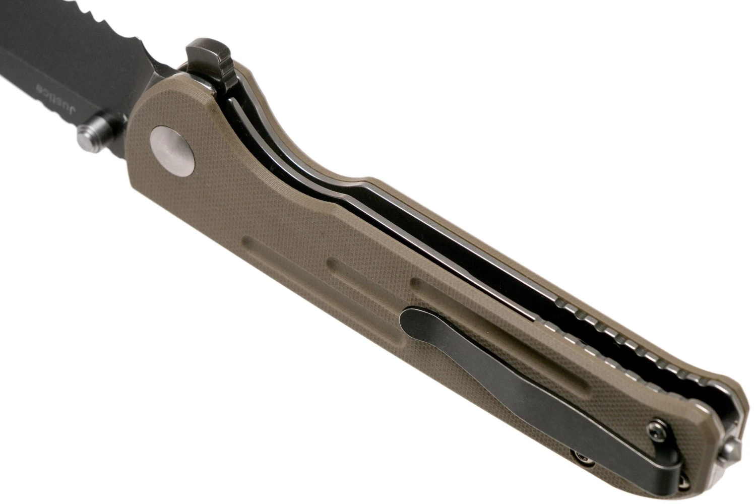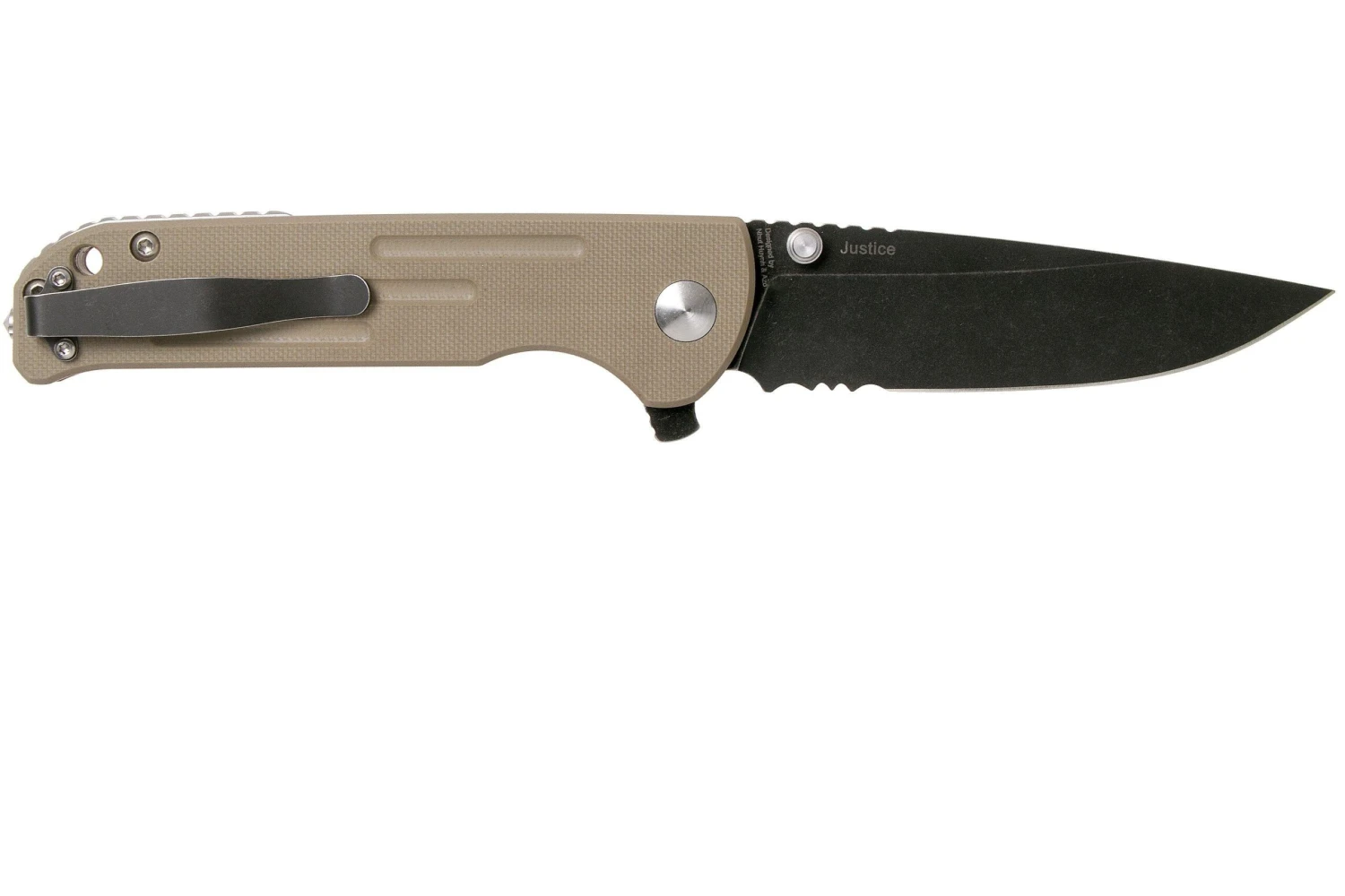 Le Kizer Vanguard Justice Tan V4543N2 est un chouette couteau de poche EDC : every day carry. Il a été conçu par Nhut Huynh et Azo. Deux célèbres créateurs de couteaux. Le Justice est l’ami de tous. Emportez ce couteau de poche dans l’entrepôt, à la maison ou en camping. Avec son format compact, son design incroyablement simple et fonctionnel, ce couteau peut servir à quasiment tout.